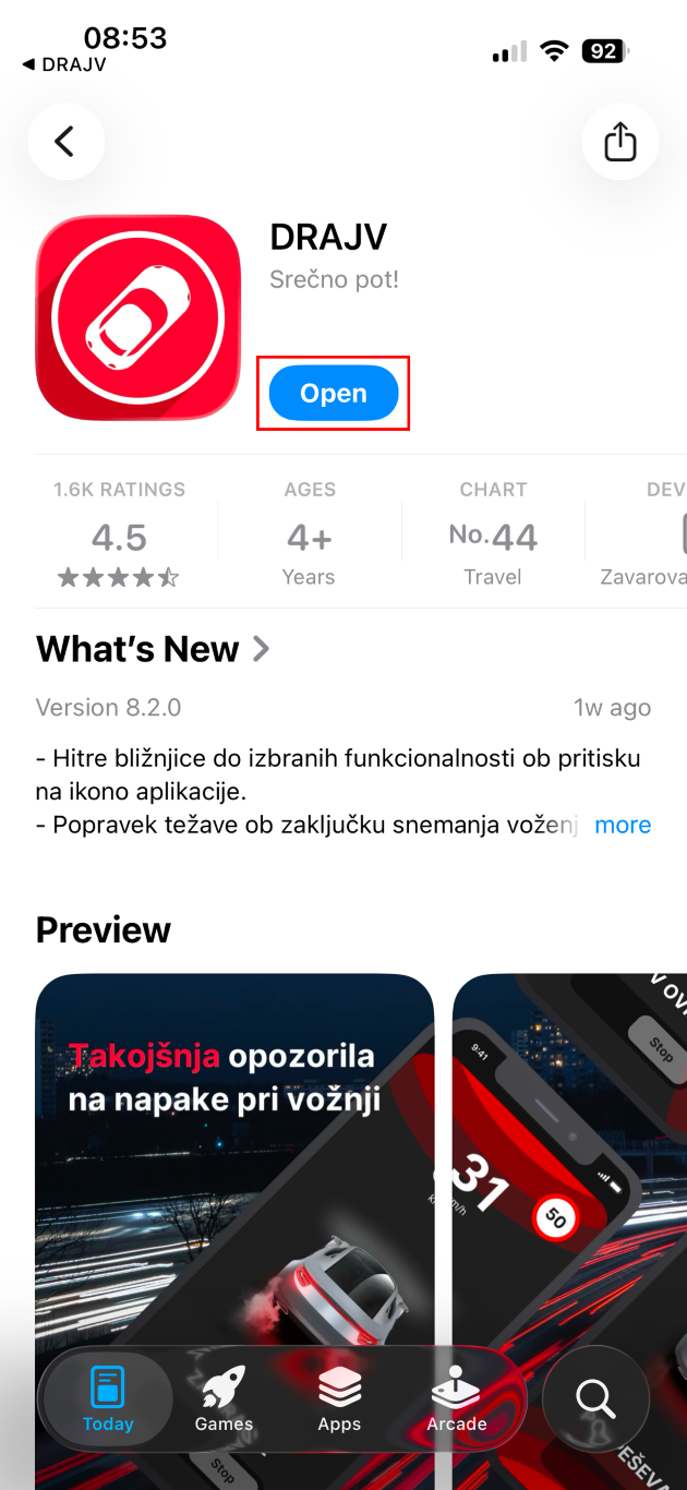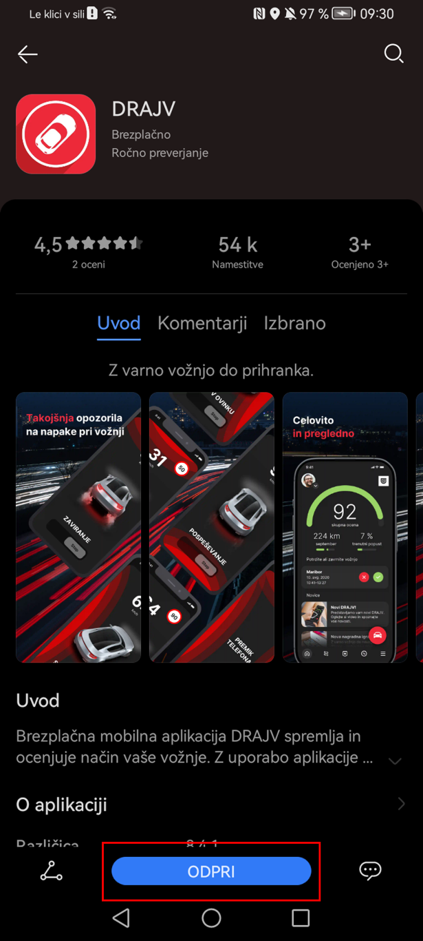 Poleg načina vožnje spremlja DRAJV tudi vašo geolokacijo med vožnjo, vendar le za potrebe določanja in prikaza hitrostnih omejitev na posameznih odsekih cest. Napake pri posameznih vožnjah lahko spremljate v aplikaciji, kar vam je lahko v pomoč pri izboljšanju vaših voznih navad.