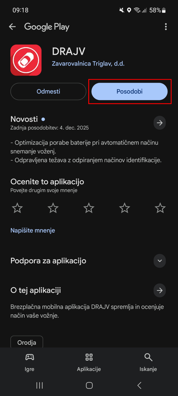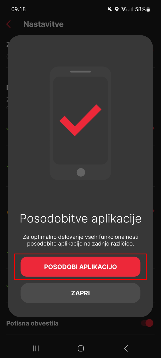 Za nemoteno delovanje aplikacije svetujemo, da vedno uporabljate najnovejšo različico aplikacije ter operacijskega sistema na vaši napravi.